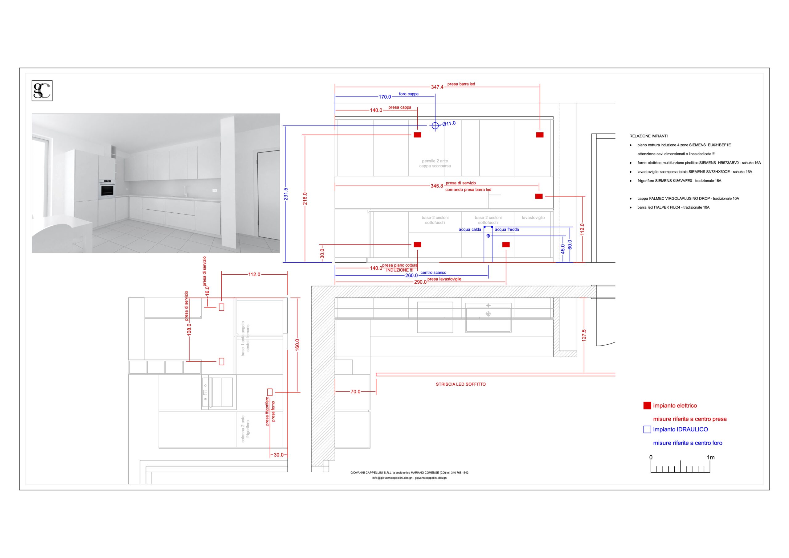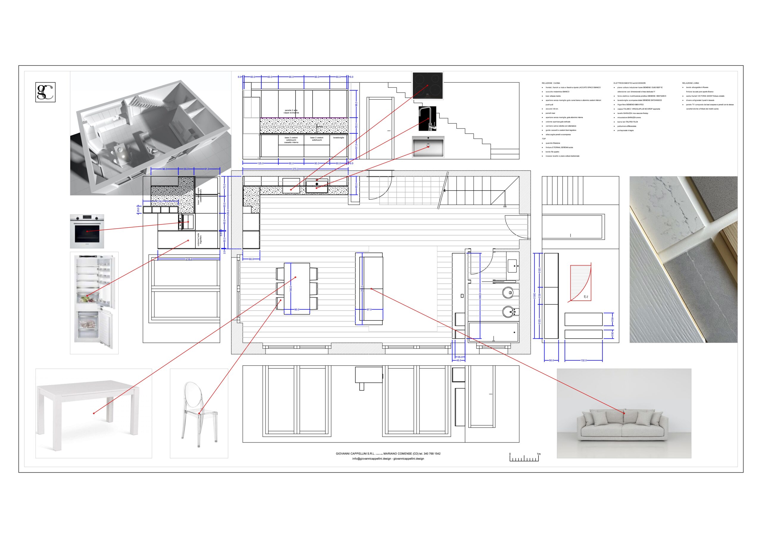 Pianta e prospetti 2D con indicazioni per la disposizione