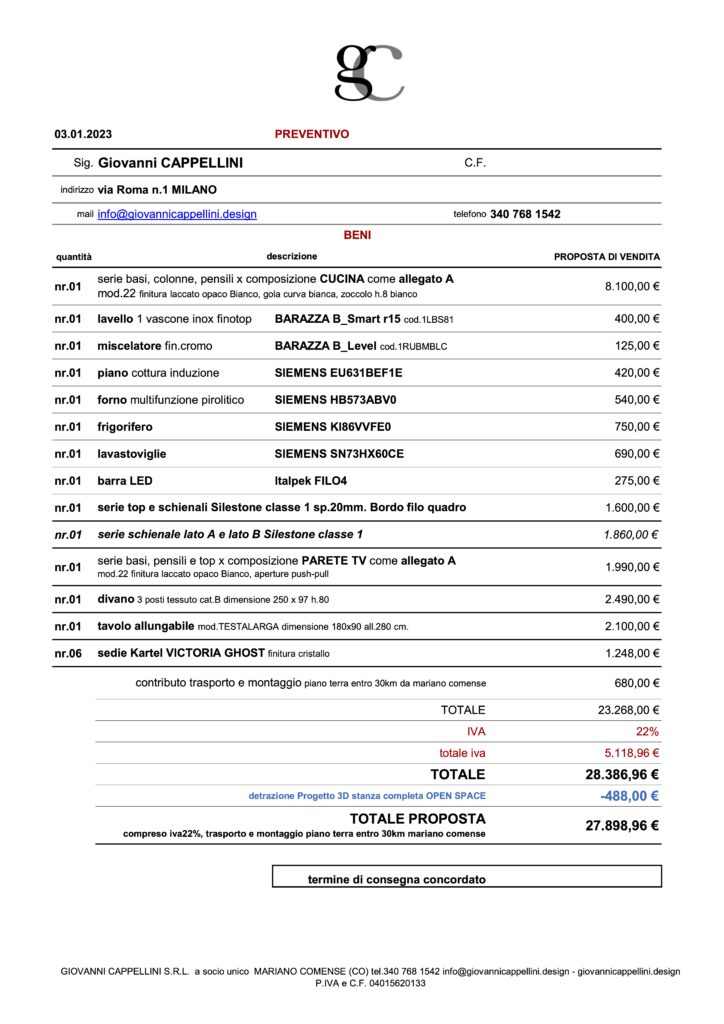 Il costo del progetto verrà scalato in caso di acquisto di quanto indicato nel preventivo di massima.